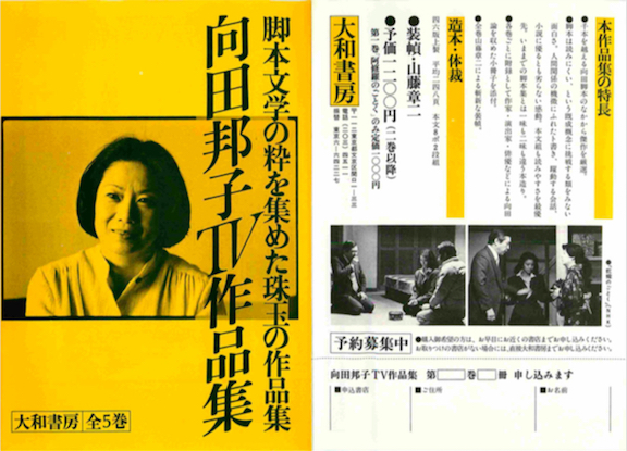 1981年から82年にかけて『向田邦子TV作品集』(大和書房)が刊行された(『阿修羅のごとく』『幸福』『冬の運動会』『家族熱』『蛇蝎のごとく』)。